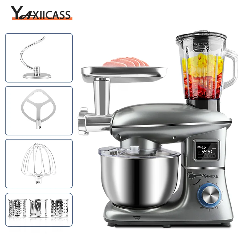 YAXIICASS Food Processor 5.5L Large Stainless Steel Bowl 1400W 10-speed Blender Egg Whisk Juicer Meat Grinder Kitchen Food Mixer